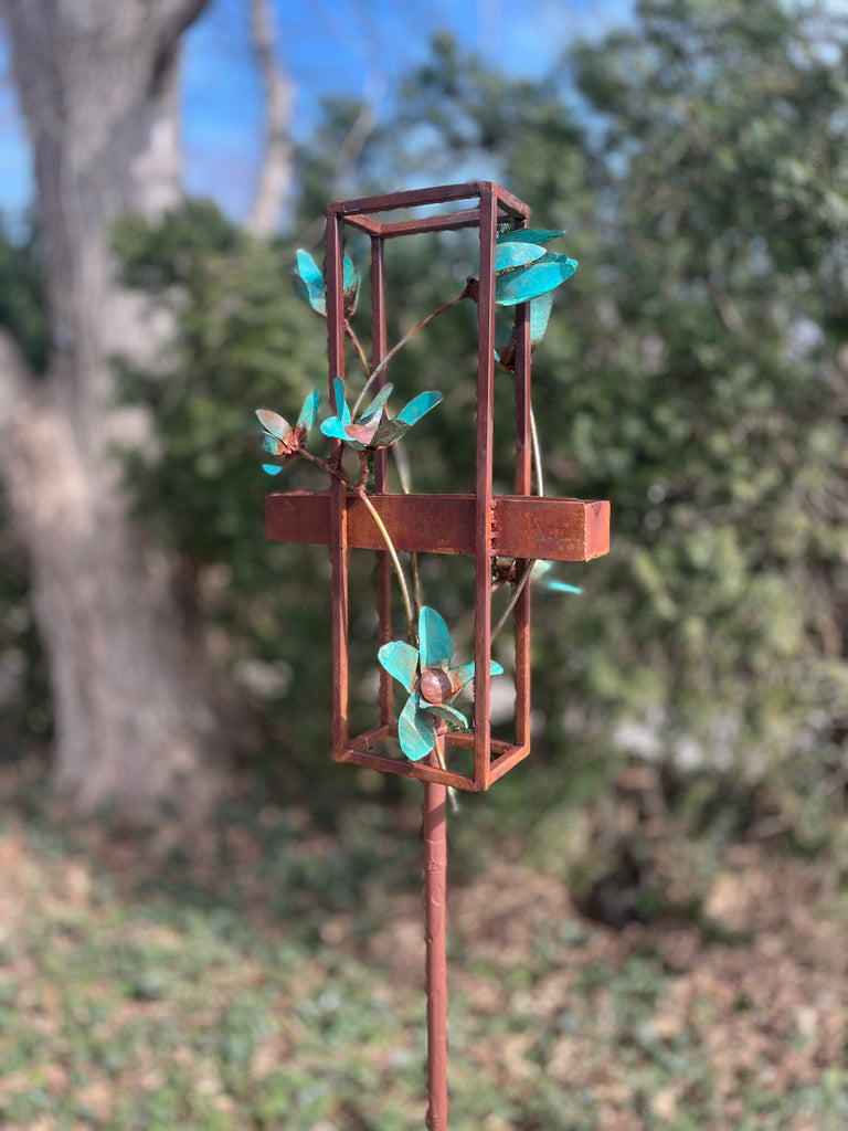 Blossom Modern Bird Feeder #5 in Welded Steel and Copper with patina finish