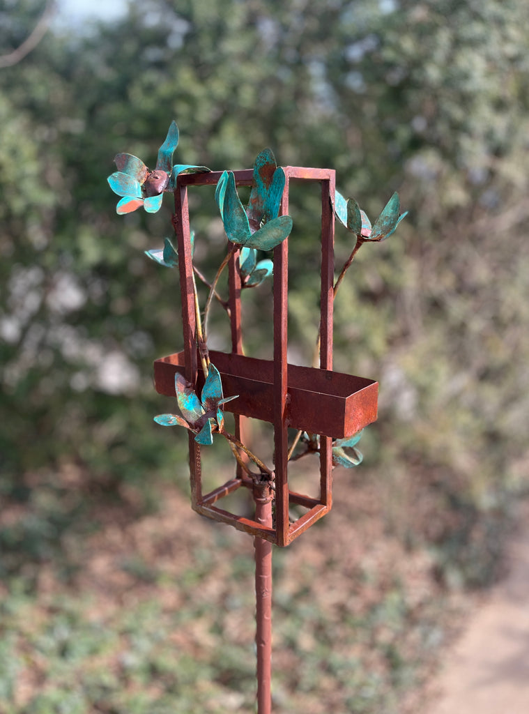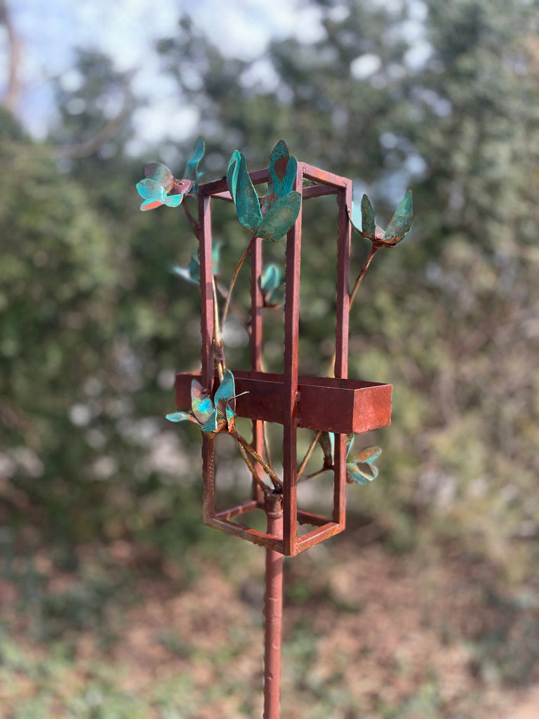 Blossom Modern Bird Feeder #7 in Welded Steel and Copper with patina finish