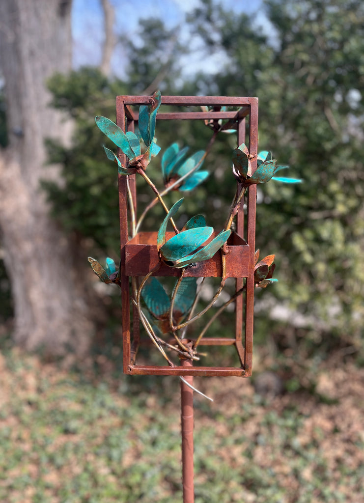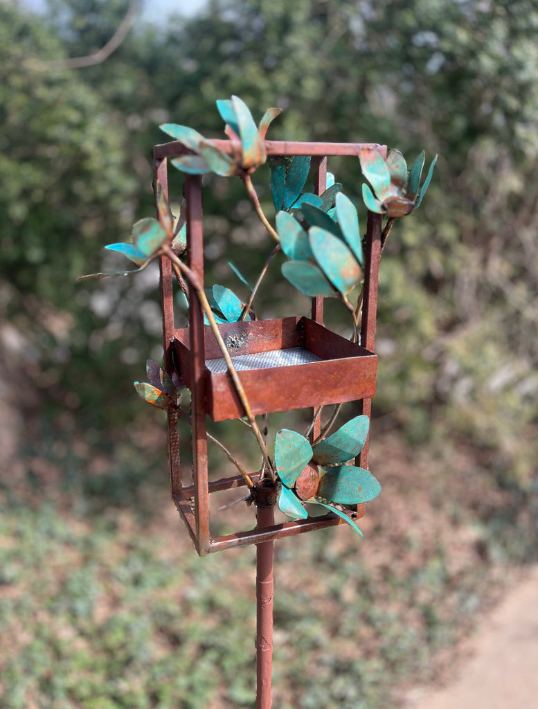Blossom Modern Bird Feeder #8 in Welded Steel and Copper with patina finish