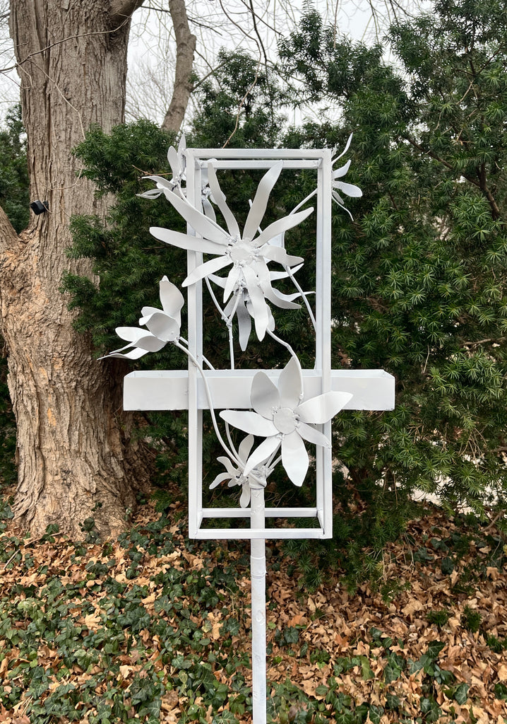 Blossom Modern Bird Feeder #1 in Welded Steel in White Spray Enamel