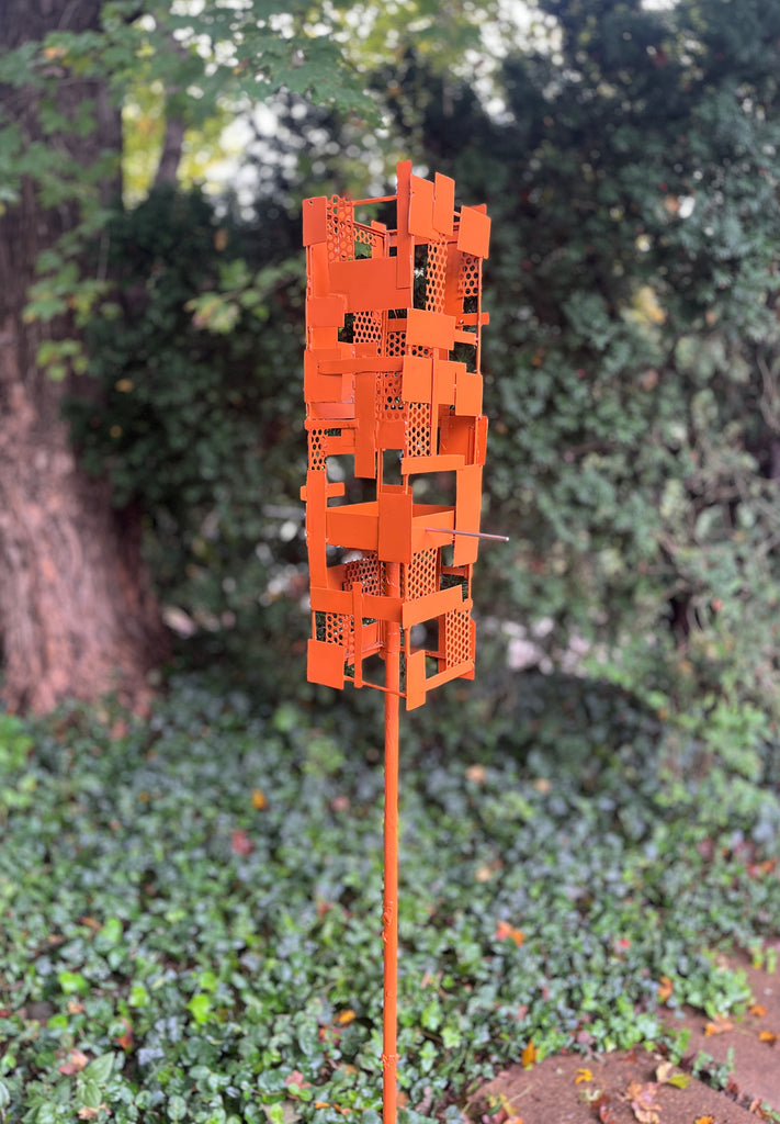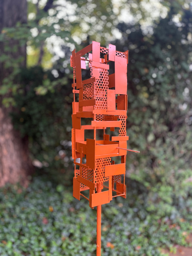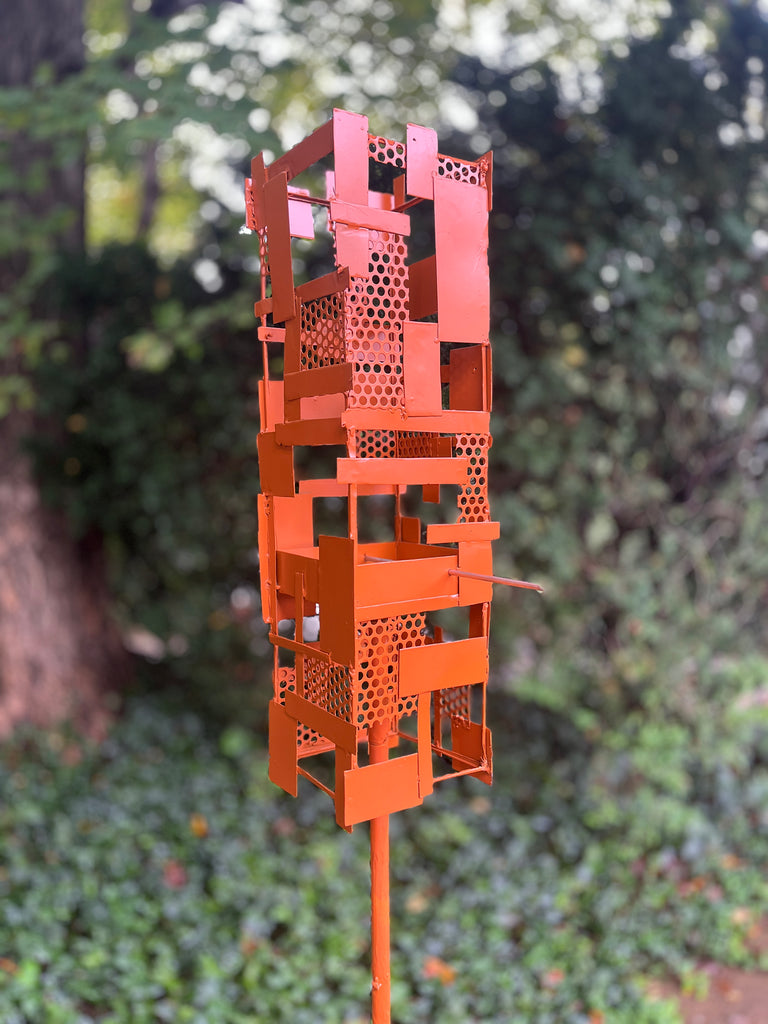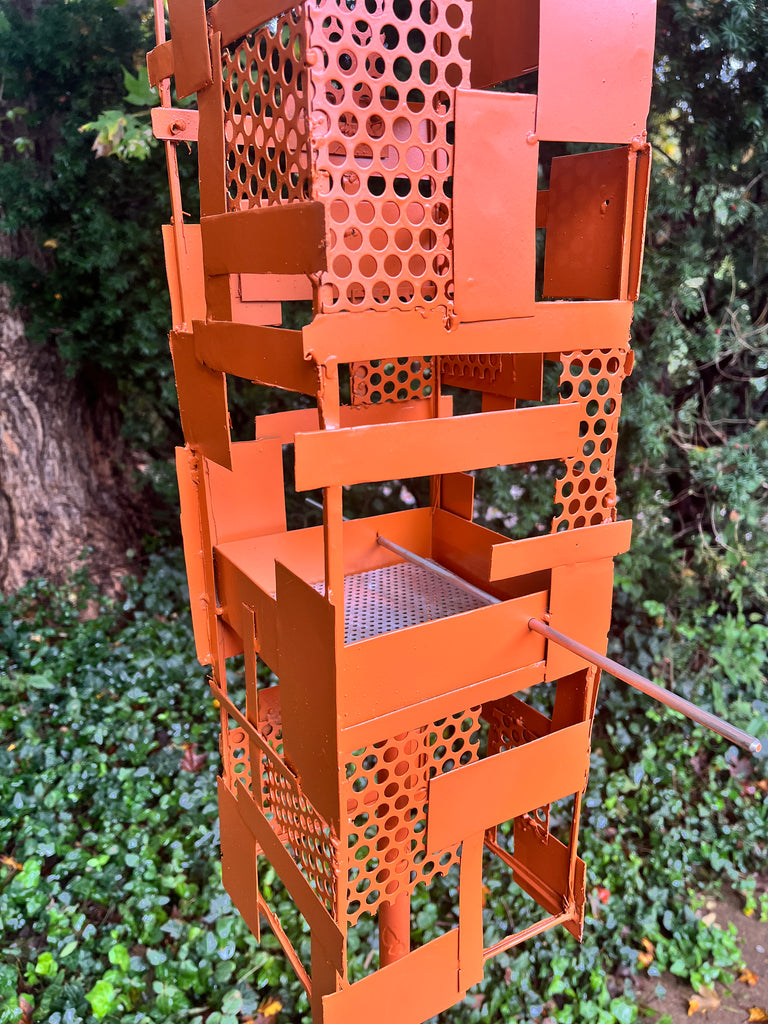 Pop Modern Bird Feeder #4 in Welded Steel with Rustic Orange Enamel finish